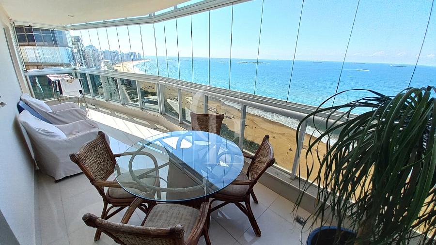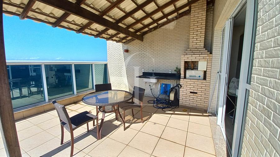 Maravilhosa cobertura duplex com 221m², frente para o mar na Praia de Itaparica. 3 quartos com 2 suítes, além do terraço descoberto com piscina e churrasqueira privativa. Excelente acabamento tendo piso em porcelanato e armários em todos os cômodos. 3 vagas de garagem cobertas, ótimo lazer.